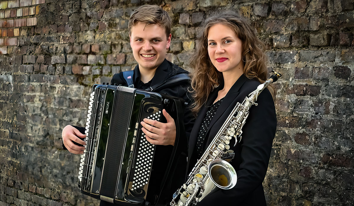 Sandra Rijavec (Saxophon) und Nepomuk Golding (Akkordeon) präsentieren ein außergewöhnliches Duo-Programm von Vivaldi bis Piazzolla – von Barock über spanische Volksmusik bis zur Moderne.
