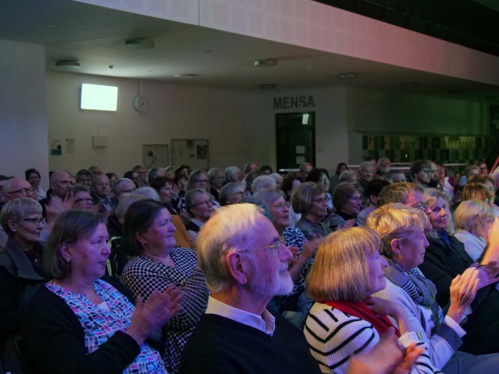 Dem Publikum im ausverkauften Foyer der Marga-Spiegel-Schule entlockt gleich das erste Stück auf dem Konzertprogramm ein überraschtes und beifälliges Raunen.